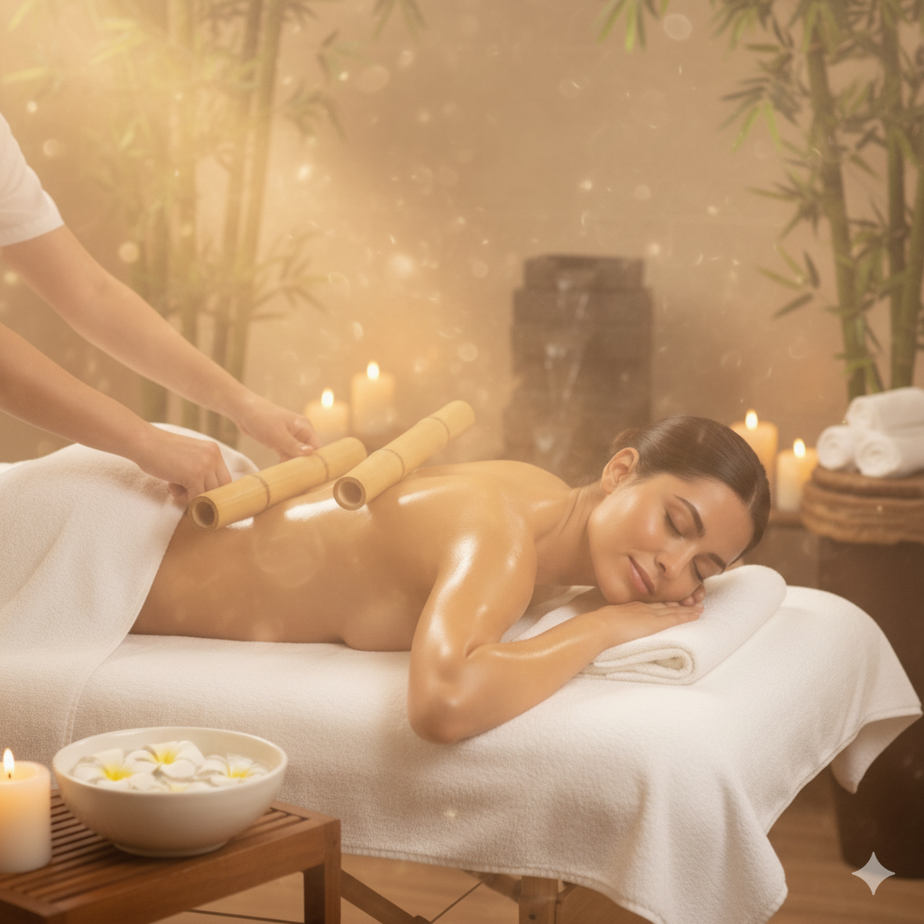 terapia alternativa de relajación y mejoramiento físico que estimula profundamente la piel, músculos, tejido adiposo y el sistema nervioso por el contacto suave y placentero con diferentes cañas de bambú aplicadas a cada zona corporal, también es usado como masaje reductivo , entre otros beneficios, según sea la necesidad del paciente.